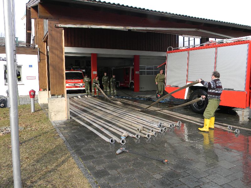 Der Einsatz dauerte für uns bis gegen 15:30 Uhr, allerdings mussten im Anschluß noch alle Schläuche, die im Einsatz waren, gereinigt und zum Trocknen aufgehängt werden.