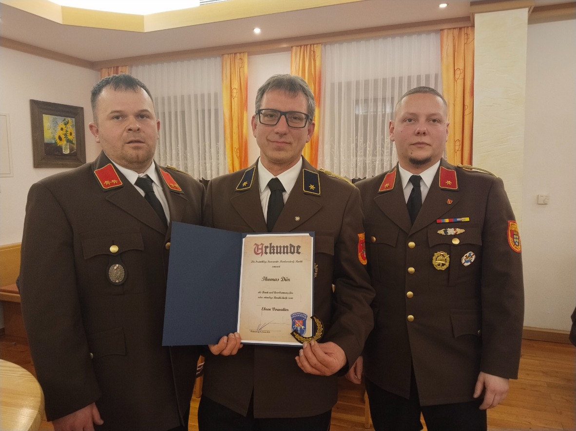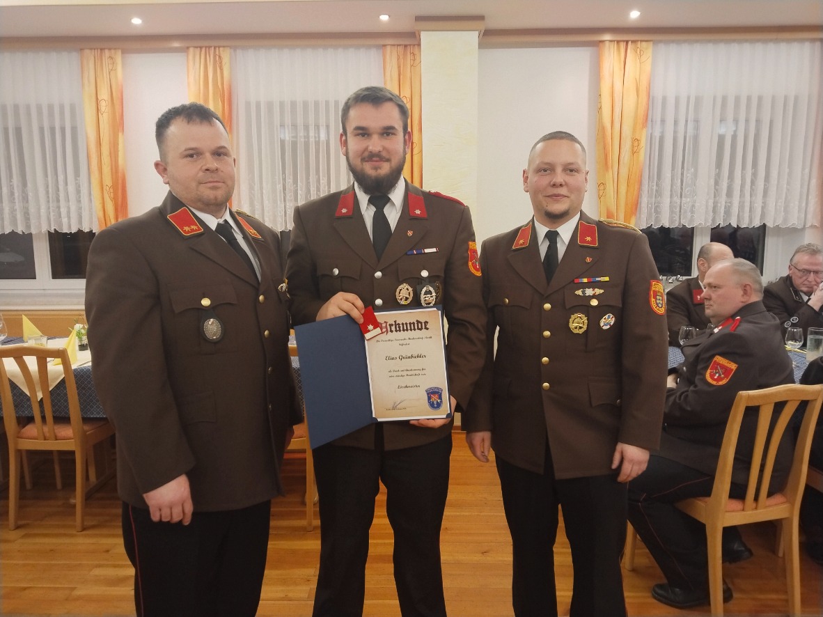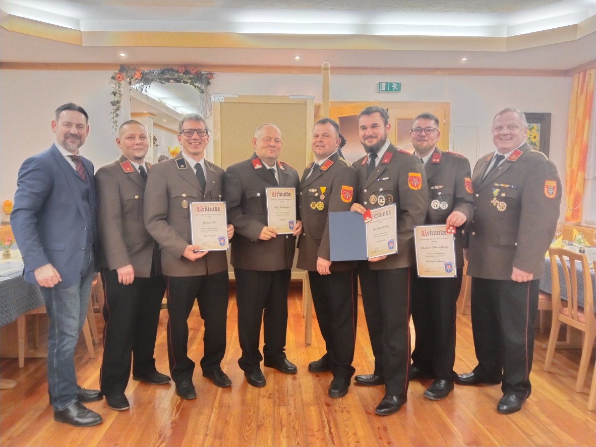 Am 16.Jänner fand im GH Zauner unsere 136. Jahreshauptversammmlung statt. Nachdem die Beschlussfähigkeit festgestellt wurde, begann unser Kommandant OBI Manuel Steinwendtner mit der Begrüßung der Ehrengäste, Mitglieder der Reserve, aktive Kameraden und unterstützende Mitglieder. Anschließend an die Begrüßungen folgte ein Totengedenken an die verstorbenen Kameraden. Heuer standen auch wieder die Wahlen an, die alle 5 Jahre durchgeführt werden. OBI Manuel Steinwendtner und BI Daniel Heimberger wurden für die nächsten 5 Jahre erneut gewählt. Unser Verwalter V Thomas Dür legte sein Amt zurück und unser Kommando ernannte ihn als Eherenverwalter für seine Tätigkeiten. Sein Amt wird jetzt Alois Heimberger weiterführen. Danach folgten die Berichte des Verwalters und der Kassenprüfer. Anschließend hörten wir die Tätigkeitsberichte der Sachbearbeiter, sowie von unserem Kommando OBI Manuel Steinwendtner und BI Daniel Heimberger. Als nächstes standen die Beförderungen am Programm wo Elias Grünbichler zum Löschmeister und Michael Blauensteiner zum Hauptfeuerwehrmann befördert wurden. Weiteres hörten wir die Ansprache von Bürgermeister Friedrich Ofenauer, Unterabschnitts Kommandant Walter Diesmayr und Ortstellenleiter vom Roten Kreuz Prinzersdorf Martin Stieger.
