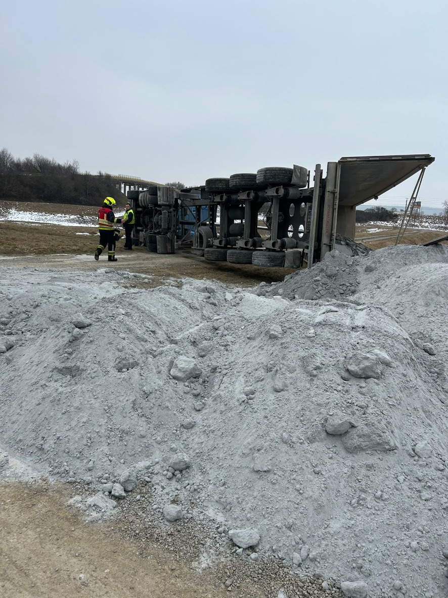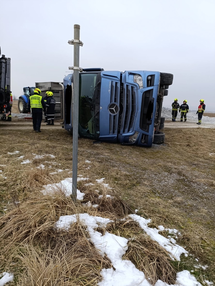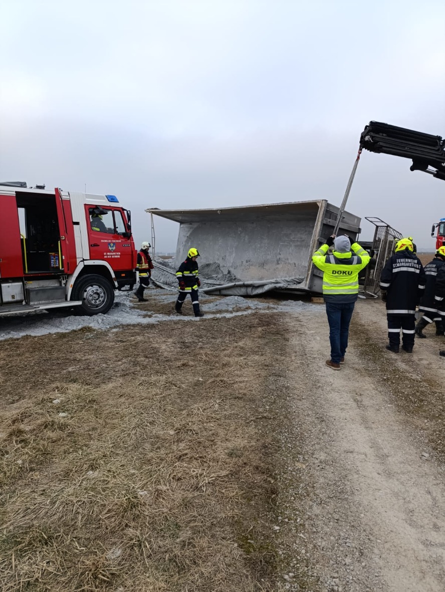 Heute in den frühen Nachmittagsstunden wurden wir zu einer Bergung von einem Großfahrzeug Richtung Nenndorf alarmiert. Am Einsatzort angekommen fanden wir einen LKW samt Sattelauflieger liegend vor. Bei der Ersterkundung konnte glücklicherweise festgestellt werden dass der Fahrer unverletzt das Fahrzeug verlassen konnte. Gemeinsam mit den Feuerwehren St.Margarethen und Hafnerbach wurde das Gespann nachdem wir den Auflieger von seiner Ladung befreit hatten, aufgestellt und die ausgeflossenen Betriebsmittel gebunden. Nach rund 3 1/2 Stunden konnten wir wieder ins Feuerwehrhaus einrücken.