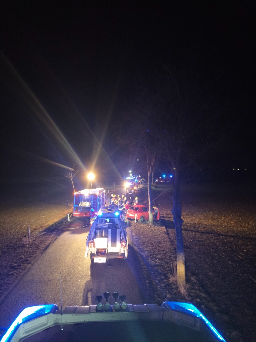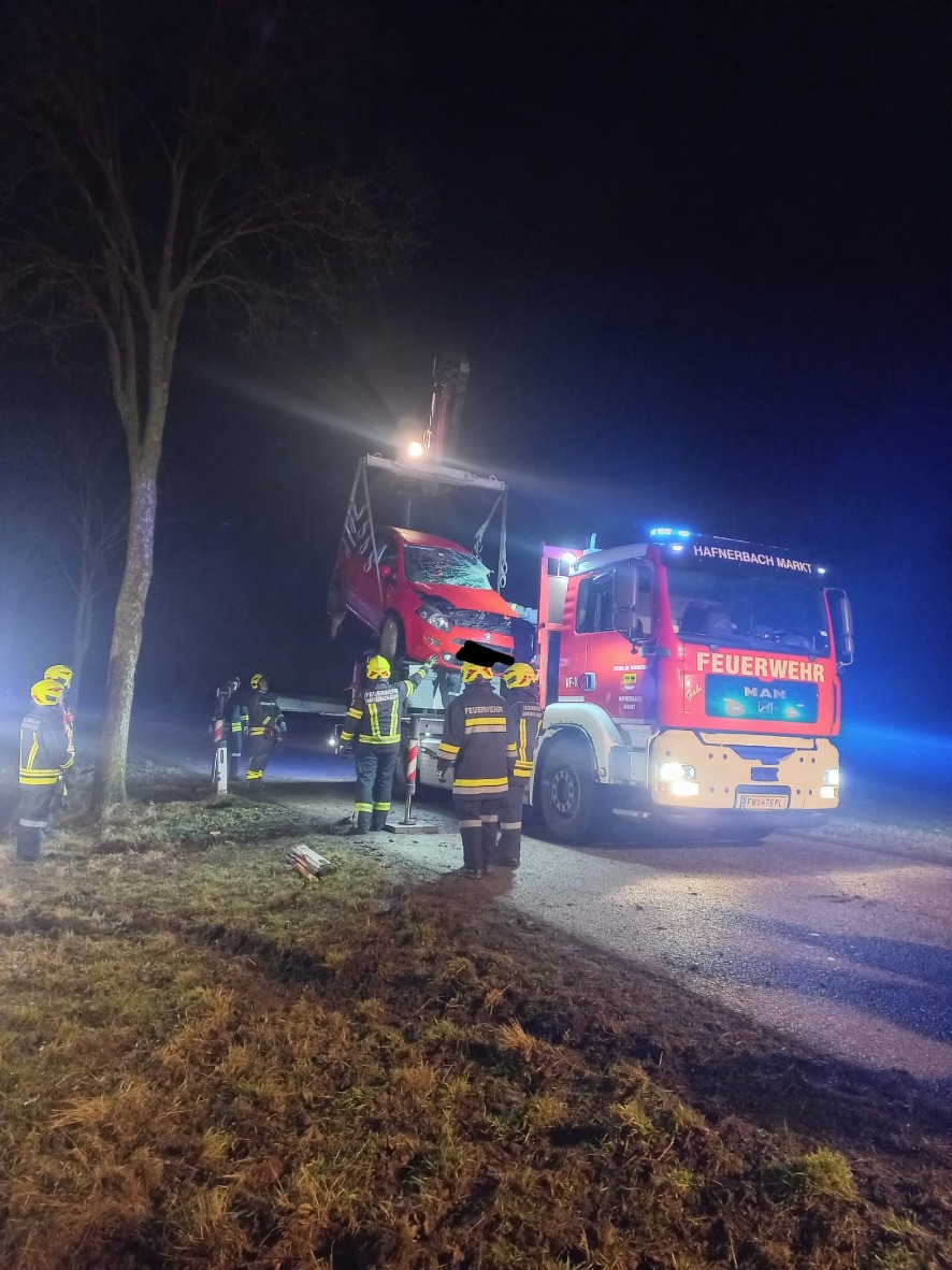 In den späten Abendstunden des 17. Februar wurde der ganze Unterabschnitt 1 zu einem Verkehrsunfall mit eingeklemmter Person mit der Zusatzmeldung (PKW gegen Baum) auf die L5172 in Fahrtrichtung Haindorf alarmiert. Beim Eintreffen am Einsatzort war ein PKW seitlich gegen einen Baum geprallt sodass der Fahrer schwerst verletzt in seinem Fahrzeug eingeklemmt wurde. Mittels hydraulischen Rettungsgerät konnten wir den Fahrer rasch befreien und anschließend dem Rettungsdienst übergeben. Anschließend wurde von der FF Hafnerbach das Fahrzeug geborgen und sicher abgestellt.