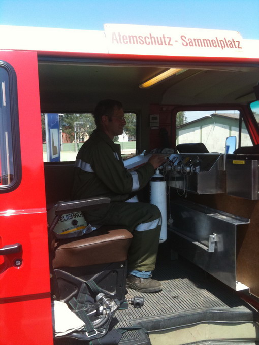 Alle (insgesamt 30Stück) am Einsatzort benötigten Atemschutzflaschen wurden vor Ort von unserem ATF wieder befüllt.