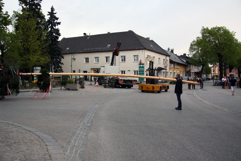 Als Unterstützung wurde von der Firma Schütz ein Lkw mit einem Ladekran beigestellt. Gespendet wurde der Maibaum vom Wirtschaftsbund Markersdorf-Haindorf.