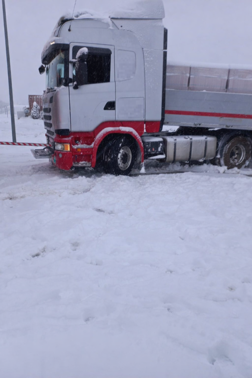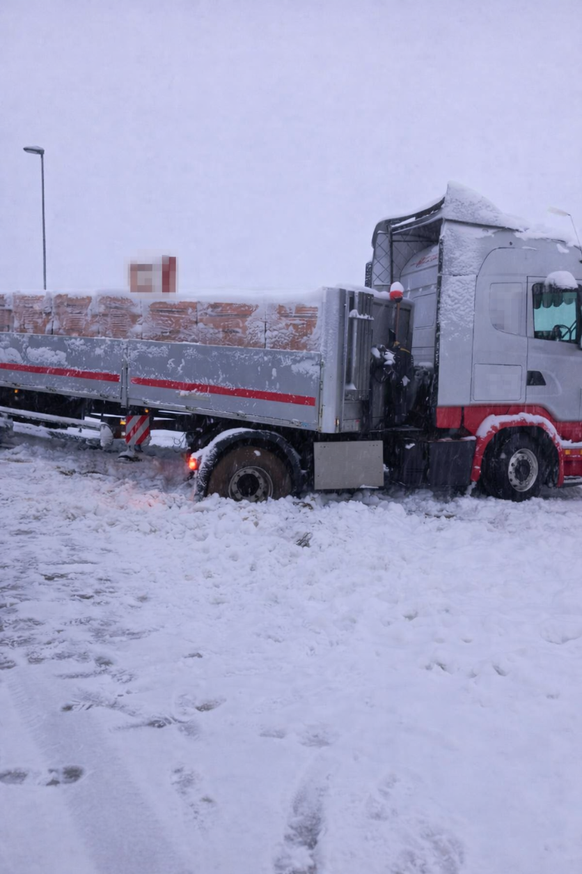 Am heutigen Morgen wurde wir zu einer Bergung aufgrund eines festgefahrenen 40-Tonnen-Lkw alarmiert.