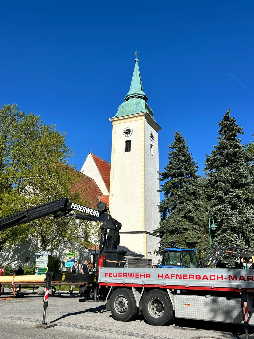 Ein herzliches Dankeschön gilt auch der FF Hafnerbach Markt die uns beim auftstellen des Maibaums mit ihrem Kran unterstützt hat.