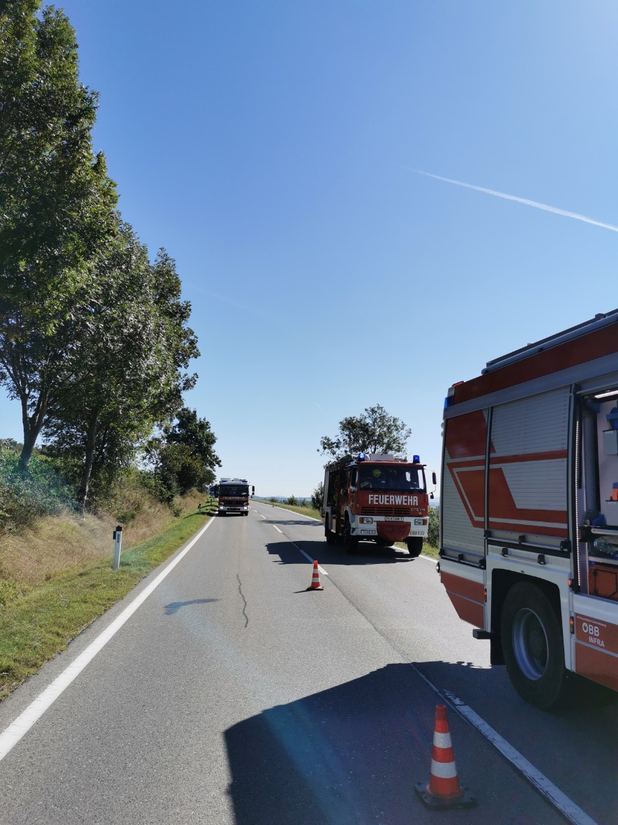 Heute wurden wir um 10:51 Uhr zu einem schweren Verkehrsunfall auf der B1 Fahrtrichtung Loosdorf alarmiert. Aus noch ungeklärter Ursache stieß ein PKW mit einem Traktor zusammen und dieser kam dann auf der Seite zu liegen. Die verletzen Personen wurden bereits vom Rettungsdienst medizinisch versorgt. Unsere Aufgabe bestand darin die ausgelaufenen Betriebsmittel aufzufangen.